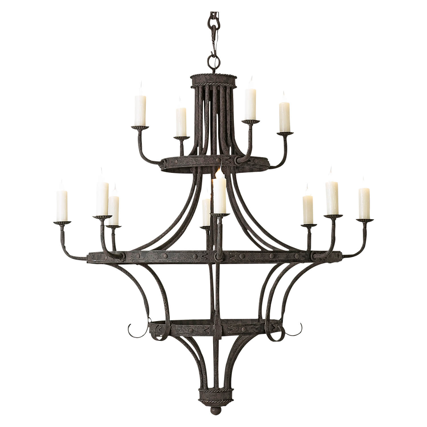 Bold in form yet graceful in detail, the Grace Chandelier is a dramatic centerpiece that radiates timeless sophistication. With its double-tiered frame, sweeping hand-forged arms, and clean architectural lines, this chandelier exudes a refined elegance suited for grand foyers, dining halls, or vaulted ceilings. Each of the 12 candle-style lights offers a warm, ambient glow, illuminating your space with balance and beauty.