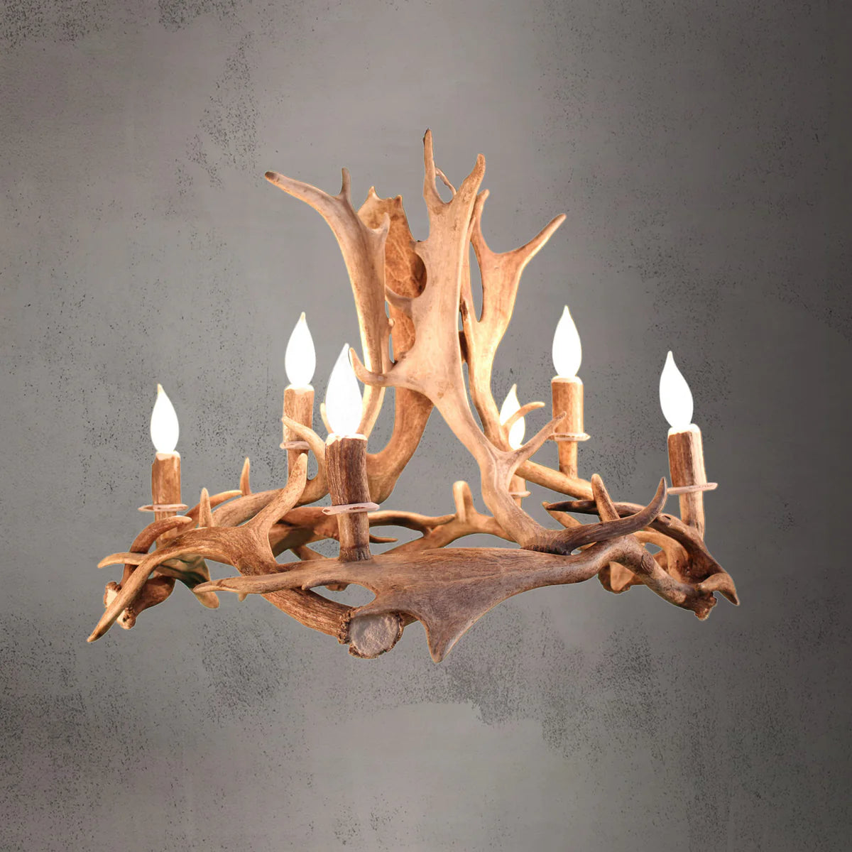 Make a dramatic, luxurious statement with the 6-Light Antler Ring Chandelier. Handcrafted in East Texas from authentic, naturally shed antlers, this striking fixture blends sculptural elegance with versatile design, creating a refined focal point for any home or business.