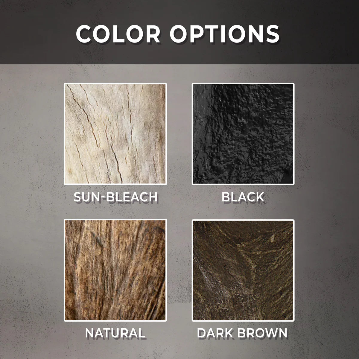Offered in natural, sun-bleached, dark brown, and black finishes. Proudly handcrafted in USA.