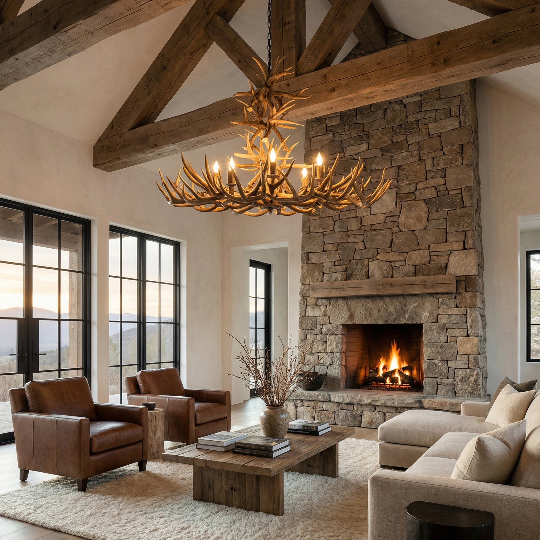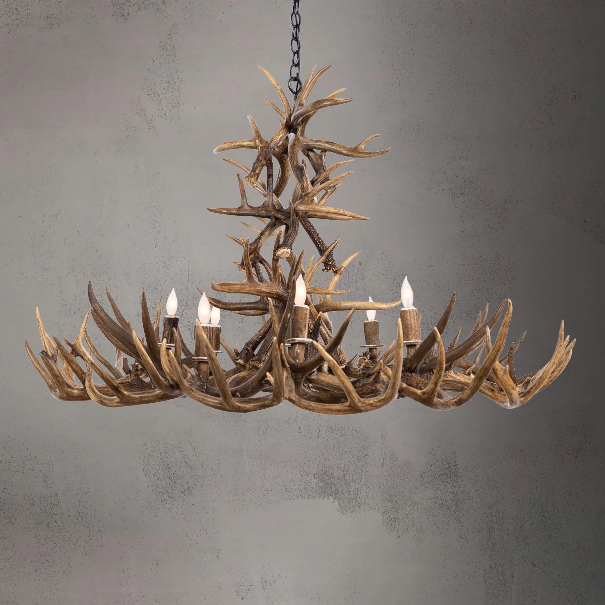 Each chandelier is one-of-a-kind, featuring natural variations in color, texture, and size that highlight its authentic character.
