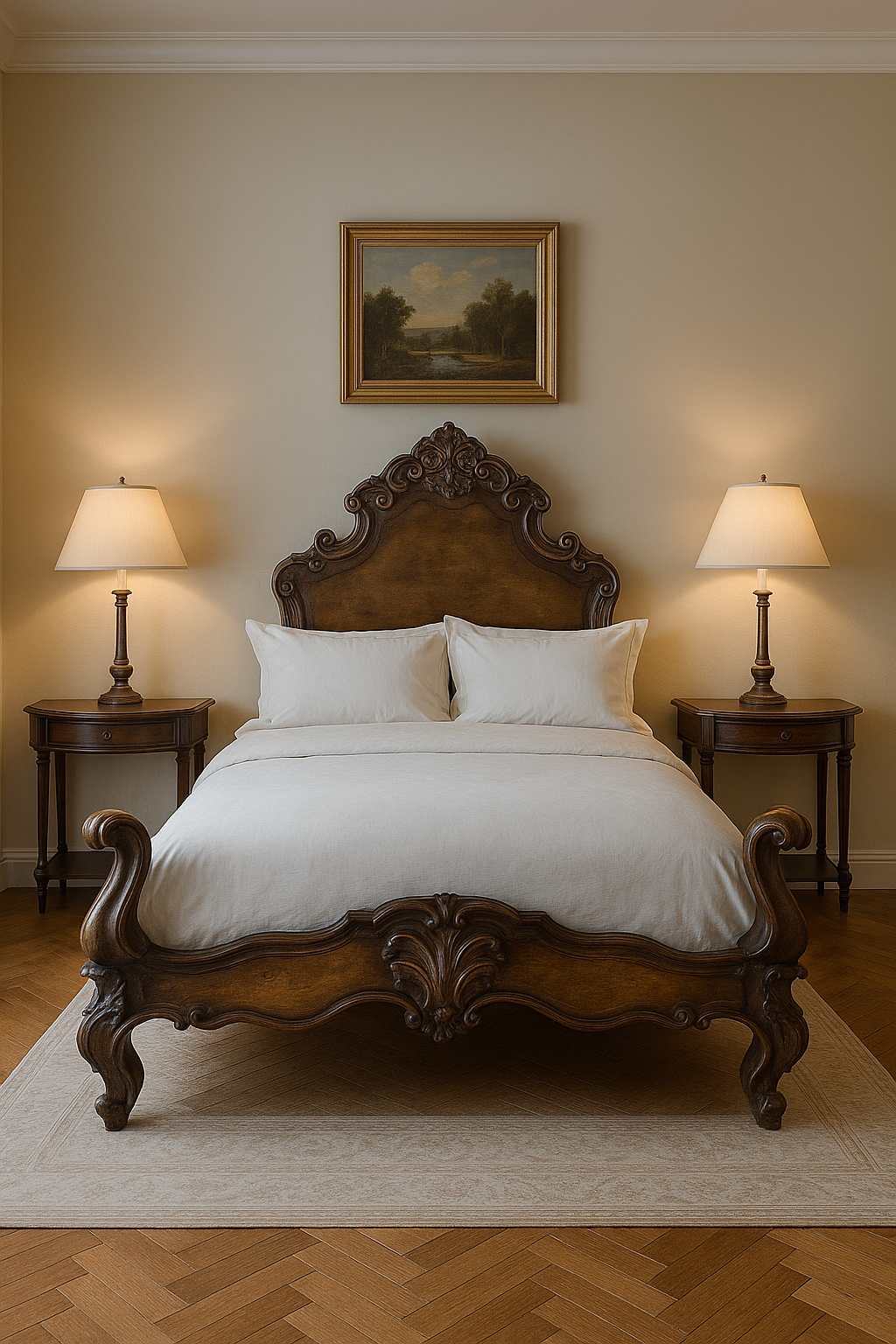 The Marqueza Bed blends old-world charm with refined craftsmanship, serving as a true heirloom centerpiece for any luxury bedroom. Hand-carved from solid wood, it features intricate scrollwork and ornate detailing along the headboard and footboard, all highlighted by a rich, multi-tone finish. Its regal silhouette—with sweeping curves, sculpted accents, and a balance of European elegance and rustic Hill Country influence—brings both sophistication and warmth to any space.
