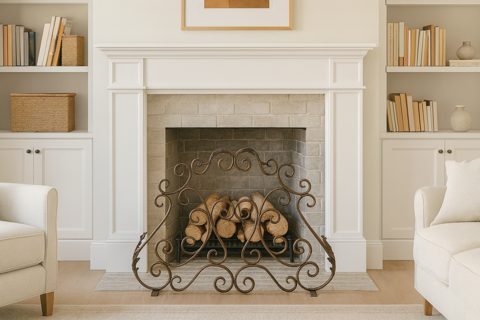 Graceful and romantic, the Willow Bend Scroll Fireplace Screen brings a delicate touch to your hearth with its sweeping curves and hand-forged scrollwork. The open, airy design gives it a light and whimsical feel, while subtle leaf accents add just the right hint of nature-inspired charm. Ideal for French country, rustic romantic, or transitional spaces that call for elegance without heaviness.