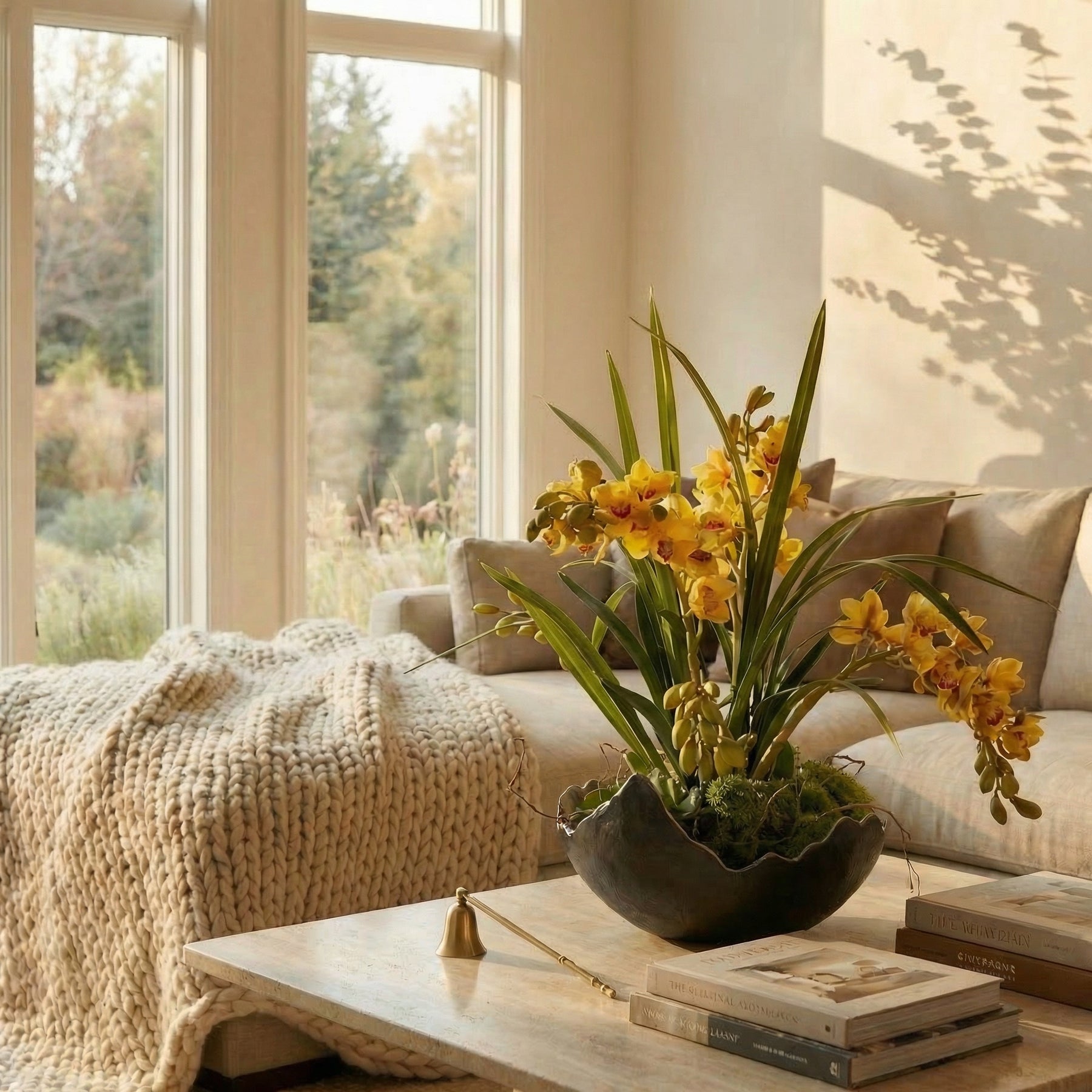• Vibrant golden orchid blooms for a dramatic focal point