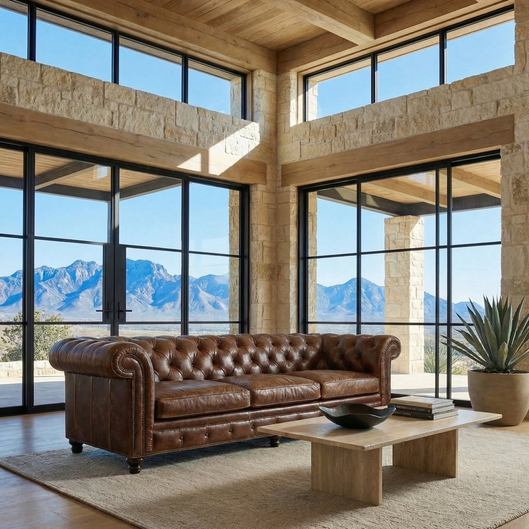 Timeless, bold, and beautifully built — the Benedict Chesterfield Sofa is the ultimate in classic leather luxury. Handcrafted with deep button tufting across the back, arms, and front rail, this iconic piece is wrapped in rich, hand-finished top-grain leather for unmatched character and comfort. Rolled arms, antique brass nailhead trim, and turned wood legs bring Old World elegance to any living room, office, or gentleman’s lounge. With three plush seat cushions, it’s as comfortable as it is commanding.