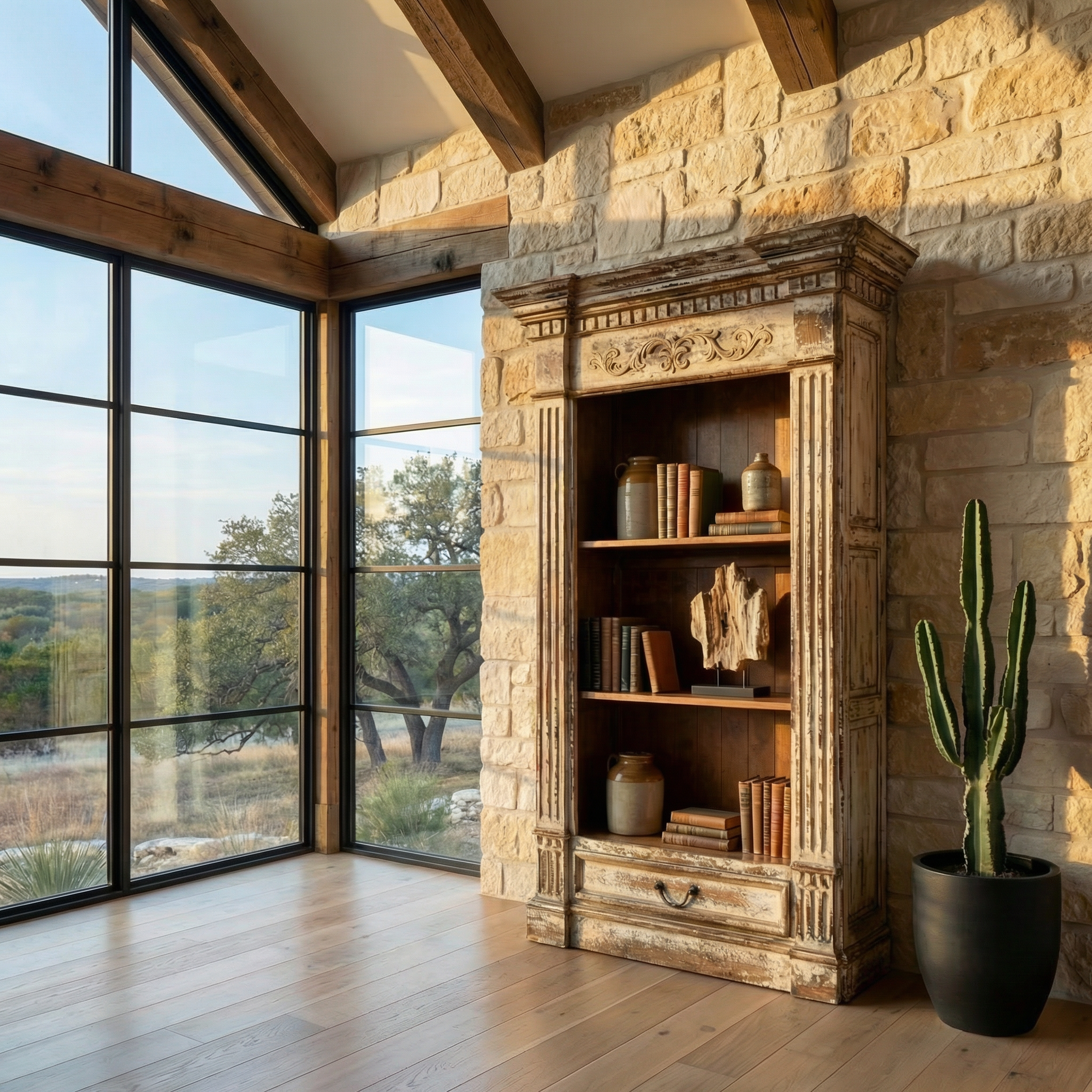 The Italo Bookcase is a captivating blend of vintage charm and practical design. This beautifully distressed bookcase features fluted columns, ornate floral accents, and a spacious lower drawer for additional storage. With its aged finish and classic architectural details, it serves as both a functional storage solution and a statement piece for your living room, office, or library.